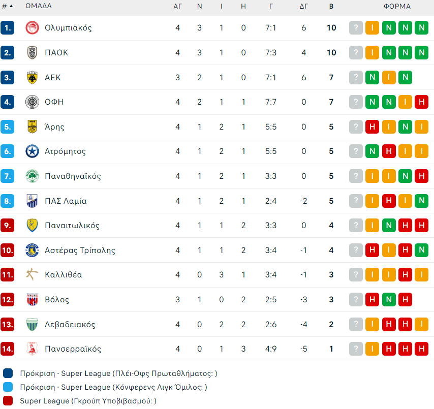 Νέα δεδομένα στη βαθμολογία της Super League, αφού πλέον δεν υπάρχει ομάδα δίχως απώλεια βαθμών. ΠΑΟΚ και Παναθηναϊκός κόλλησαν στο 0-0. Έτσι οι «ασπρόμαυροι» το νικηφόρο σερί των «ασπρόμαυρων» σταμάτησε.