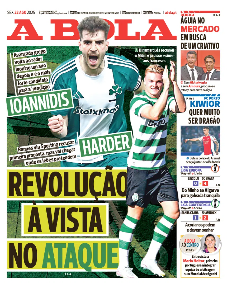 Ο Φώτης Ιωαννίδης αποτελεί ένα από τα αγαπημένα παιδιά του πορτογαλικού Τύπου. Το όνομά του φιγουράρει στο πρωτοσέλιδο της A Bola. Ο αρχηγός του Παναθηναϊκού βρίσκεται ξανά στο επίκεντρο των μεταγραφικών σεναρίων, με τη Σπόρτινγκ Λισαβόνας να εξετάζει σοβαρά το ενδεχόμενο να κινηθεί εκ νέου για την απόκτησή του.