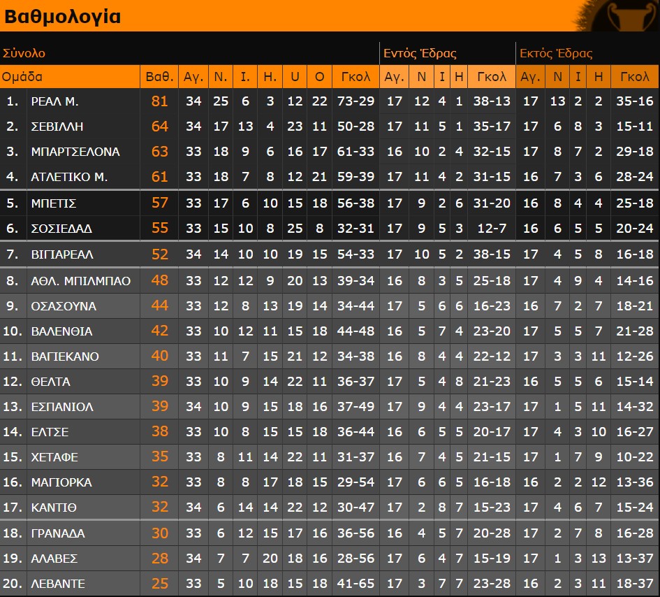 Οι Μαδριλένοι καιρό τώρα έπαιζαν μόνο τους και σχετικά νωρίς εξασφάλισαν την κατάκτηση του τίτλου. Για τρίτη σερί χρονιά η κούπα πάει στη Μαδρίτη και δεύτερη φορά στην τριετία στους «μπλάνκος», αφού πέρυσι πρωταθλήτρια είχε στεφθεί η Ατλέτικο Μαδρίτης.