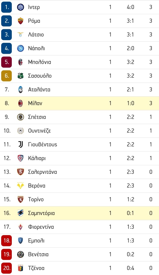 Τα αποτελέσματα της 1ης αγωνιστικής της Serie A: