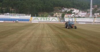 Οι Βοιωτοί «εκμεταλλεύτηκαν» τη διακοπή για να συντηρήσουν τον χλοοτάπητα του σταδίου της πόλης