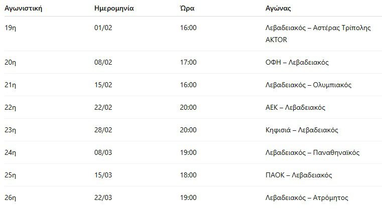 Το πρόγραμμα του Λεβαδειακού μέχρι το τέλος της regular season