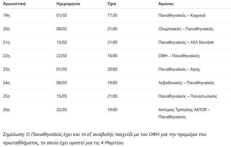 Το πρόγραμμα του Παναθηναϊκού μέχρι το τέλος της regular season
