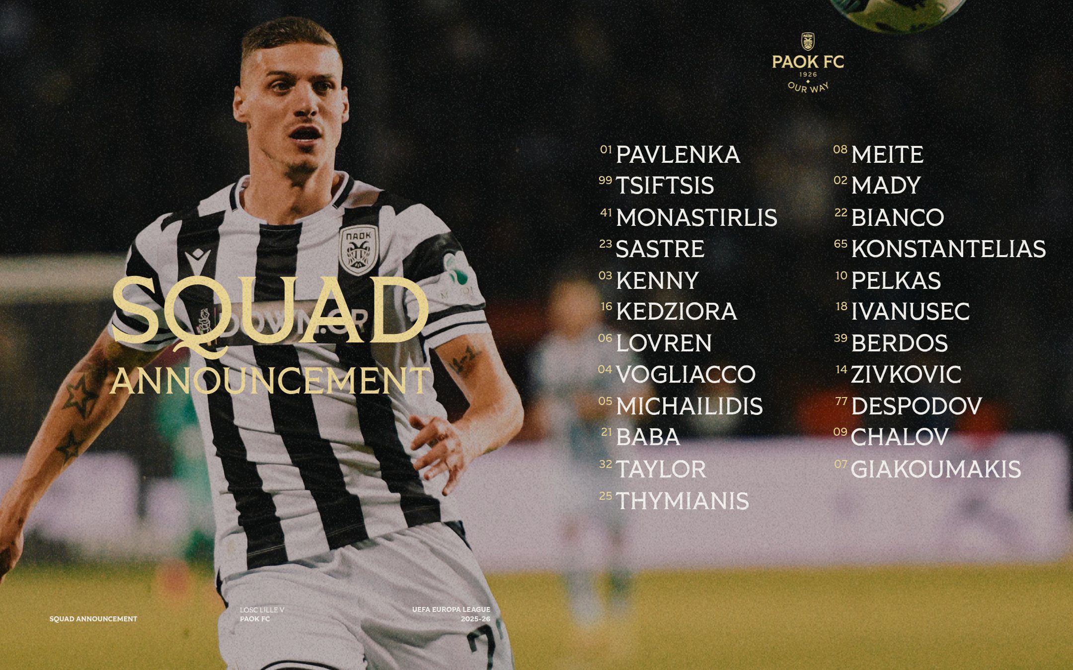 Λιλ – ΠΑΟΚ : Μέσα ο Παβλένκα – Εκτός Οζντόεφ και Τάισον