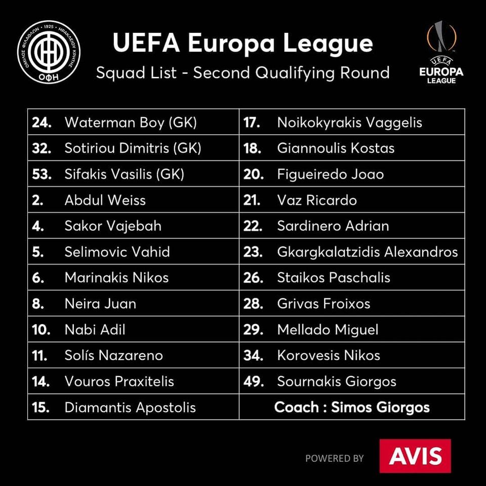 Ενόψει του αγώνα με την ομάδα της Κύπρου, οι Κρητικοί έστειλαν στην UEFA την Πέμπτη τη λίστα με τα ονόματα των ποδοσφαιριστών που θα έχουν δικαίωμα συμμετοχής.