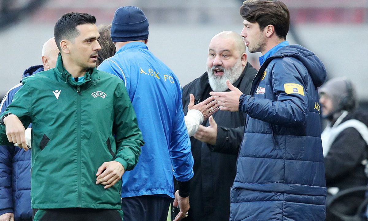 Στο τέλος της αναμέτρησης, οι δυο τους έδωσαν αμοιβαίες εξηγήσεις. Χειραψία, όπως αυτή με τον Γιοβάνοβιτς, δεν υπήρξε αλλά το περιστατικό έληξε.