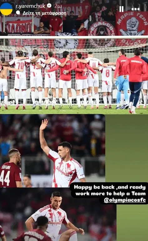 Ολυμπιακός: Χαρούμενος ο Γιάρεμτσουκ για την επιστροφή του στη δράση!