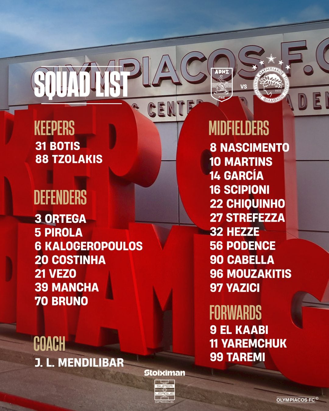 Η αποστολή του Ολυμπιακού για το ματς με τον Άρη
