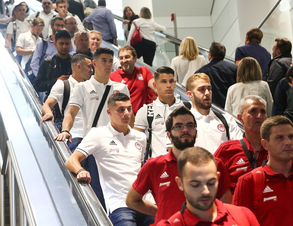 Λίγα λεπτά πριν από τις 12:00 ώρα Ελλάδας έφτασε στο αεροδρόμιο του Μονάχου η αποστολή του Ολυμπιακού.