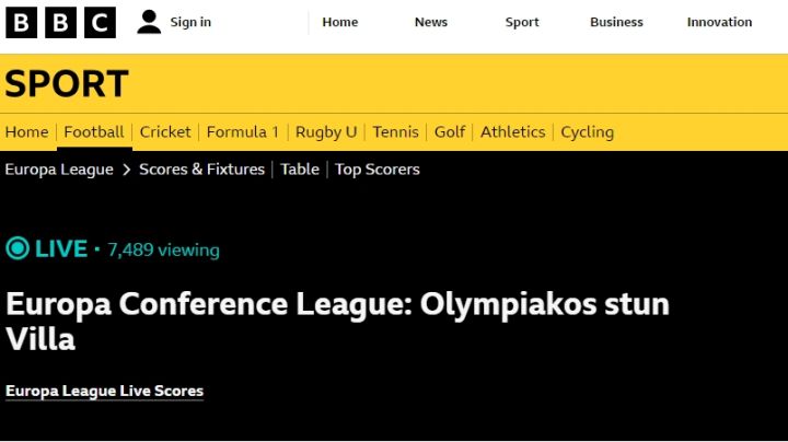 BBC: «Ο Ολυμπιακός κατέπληξε την Άστον Βίλα»