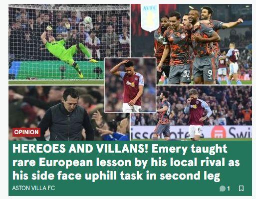 Όπως είναι λογικό, τα αγγλικά ΜΜΕ στέκονται στην ήττα της ομάδας του Ουνάι Έμερι, με τον Αγιούμπ ελ Κααμπί να είναι το κεντρικό πρόσωπο, χάρη στο χατ τρικ που πέτυχε.