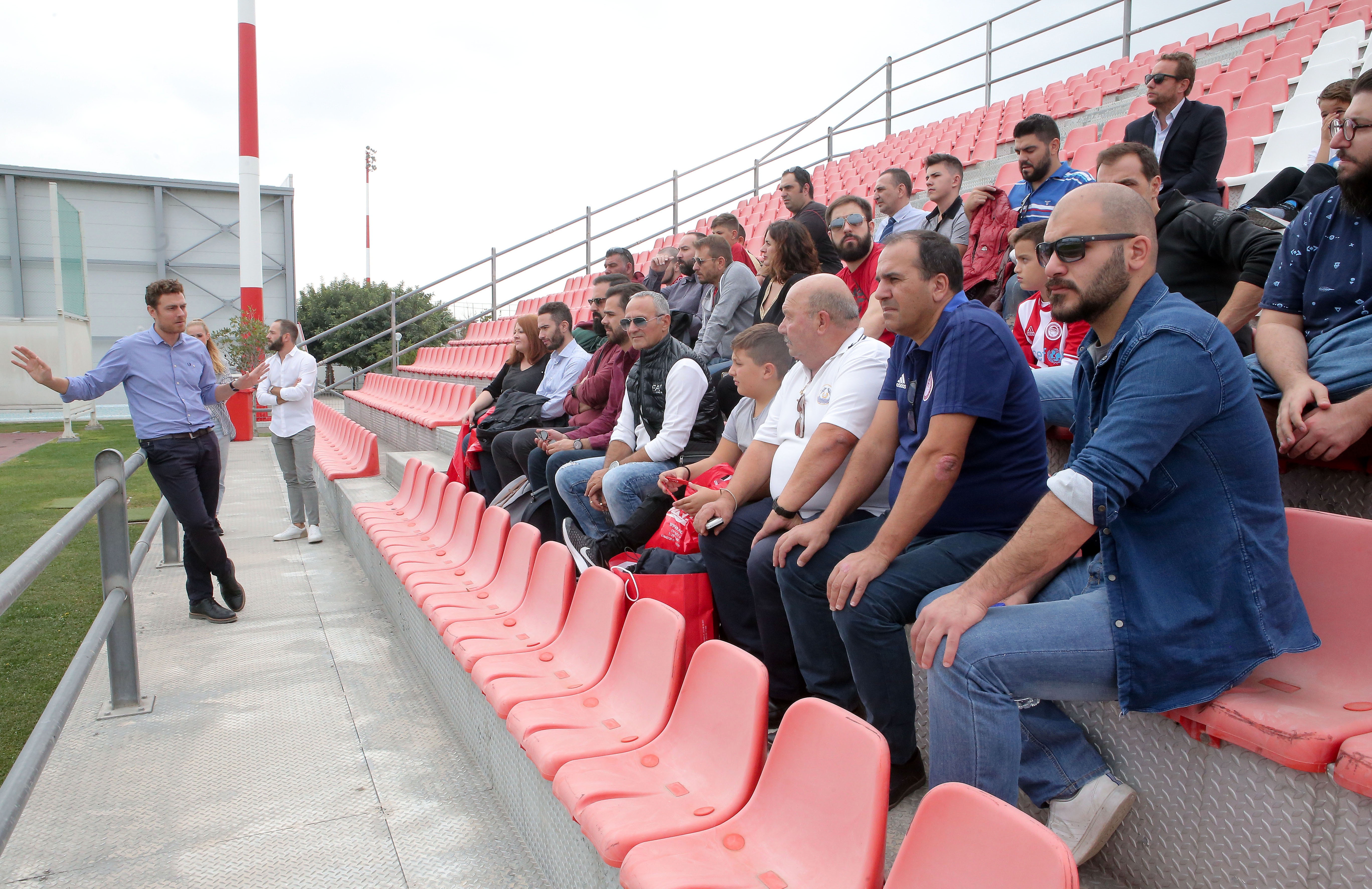 Αφού τελείωσαν την ξενάγησή τους, ήρθε η ώρα να γνωρίσουν από κοντά τους ποδοσφαιριστές και το τεχνικό επιτελείο του Θρύλου. Μάλιστα, φωτογραφήθηκαν μαζί τους πριν την έναρξη της προπόνησης και στη συνέχεια παρακολούθησαν ένα μέρος της.