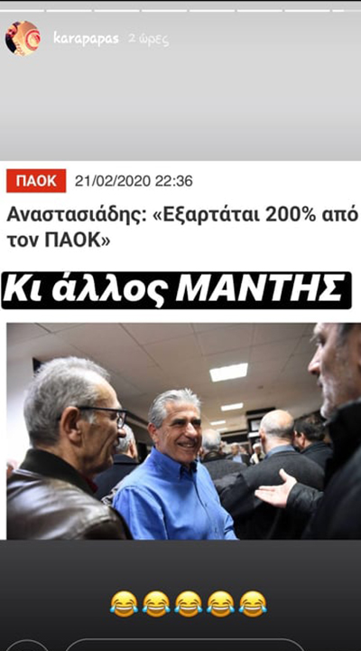 Συγκεκριμένα, έγραψε για τους Άγγελο Αναστασιάδη και Λουκά Καραδήμο. Ο πρώτος έχει κάτσει στον πάγκο του ΠΑΟΚ, ενώ ο δεύτερος έχει φορέσει τη φανέλα ως ποδοσφαιριστής της ομάδας.