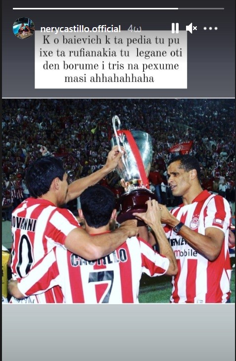 “Και ο Μπάγεβιτς και τα παιδιά του που είχε τα ρουφιανάκια του λέγανε ότι δεν μπορούμε οι τρεις να παίξουμε μαζί χαχαχαχα” έγραψε ο Καστίγιο.