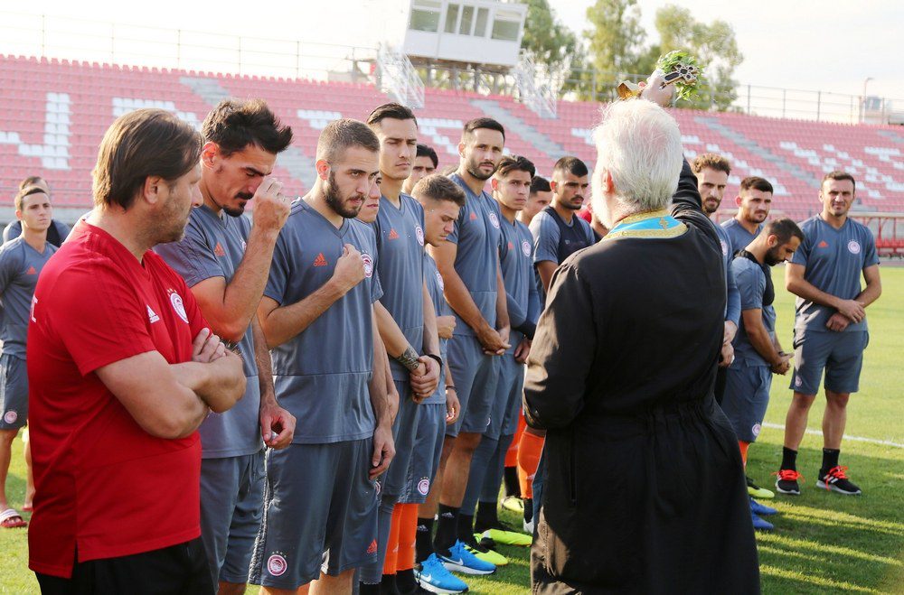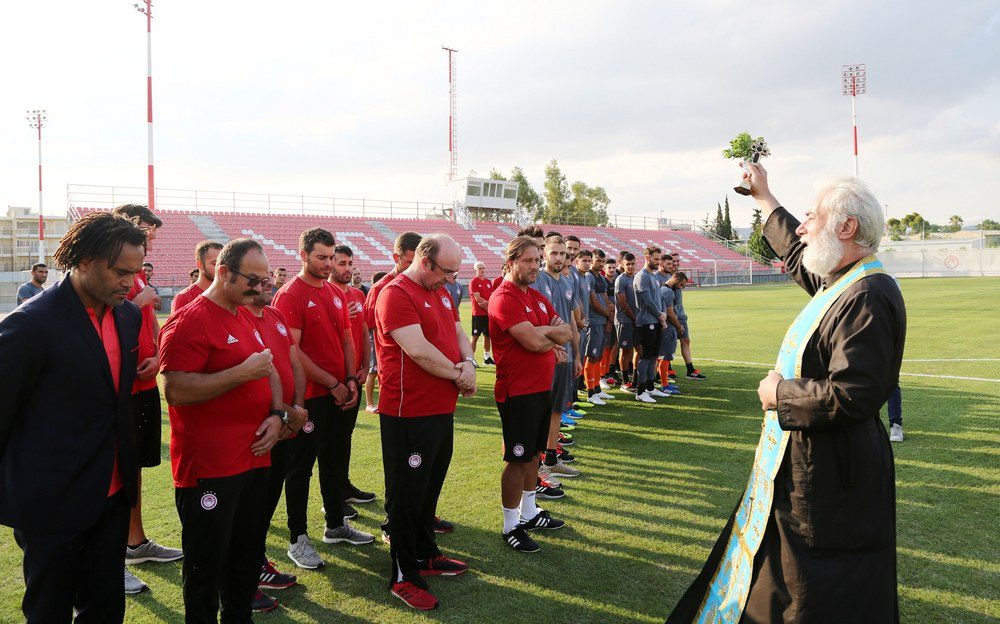 Πριν από την έναρξη της απογευματινής προπόνησης, ο πατήρ Δημήτριος τέλεσε τον Αγιασμό στο προπονητικό κέντρο της ομάδας, στο Ρέντη, παρουσία του διοικητικού ηγέτη του Ολυμπιακού, σύσσωμης της διοίκησης και του ποδοσφαιρικού τμήματος, αλλά και στελεχών της ΠΑΕ. Ο Βαγγέλης Μαρινάκης χαιρέτησε έναν προς έναν όλους τους ποδοσφαιριστές της ομάδας και, φυσικά, τον προπονητή Πέδρο Μαρτίνς.