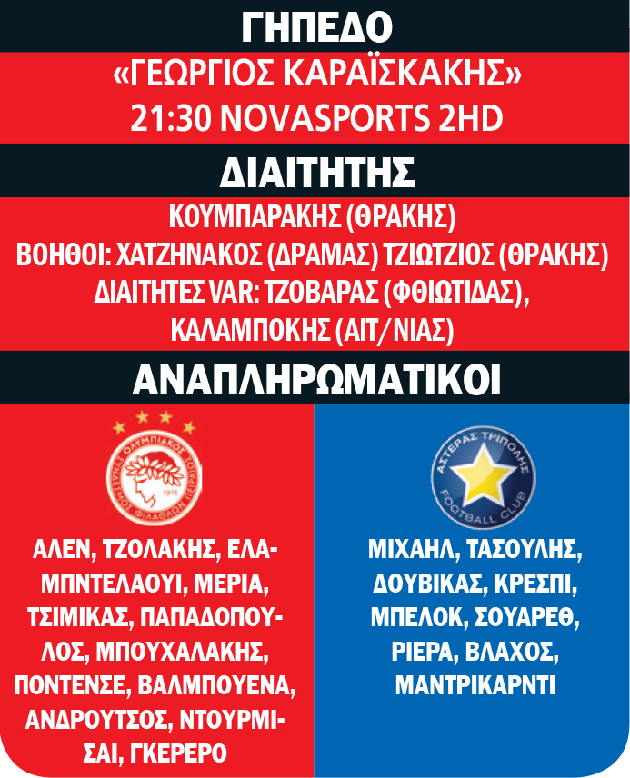 ΔΙΑΒΑΣΤΕ ΕΠΙΣΗΣ – Ολυμπιακός – Αστέρας: Όλοι στην αποστολή