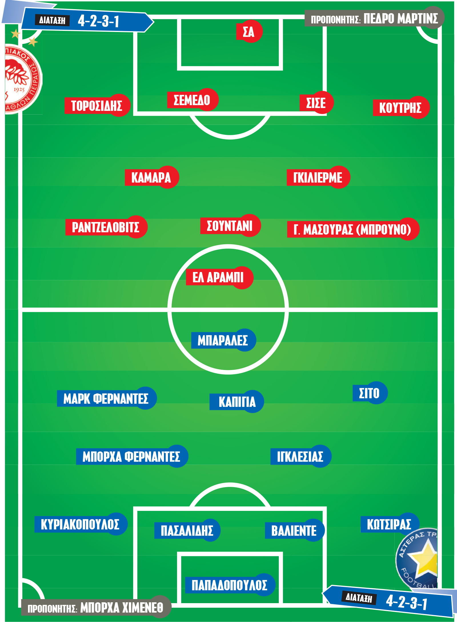 Από εκεί και πέρα, ο προπονητής των «ερυθρόλευκων», Πέδρο Μαρτίνς, έχει σκοπό να προχωρήσει σε αρκετές αλλαγές για το αποψινό ματς. Ο Πορτογάλος θέλει να ξεκουράσει τους βασικούς του ποδοσφαιριστές, μετά τα συνεχόμενα ματς στην Ευρώπη και συγκεκριμένα στα προκριματικά του Champions League.