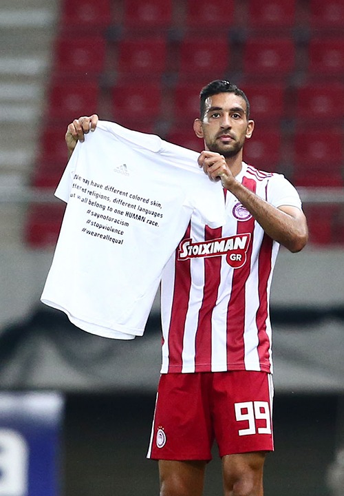 Τη στιγμή του πανηγυρισμού του ο παίκτης των «ερυθρόλευκων» θέλησε να περάσει το δικό του μήνυμα.