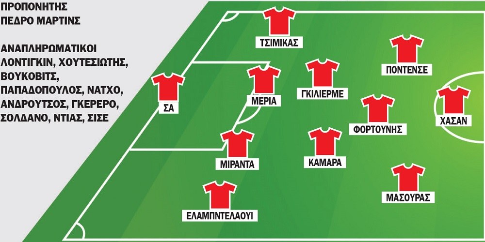 Στο Καραϊσκάκη ο Ολυμπιακός θα παραταχθεί χωρίς τους τραυματίες Ανδρέα Μπουχαλάκη, Λεονάρντο Κούτρη, αλλά και τους γνωστούς Βασίλη Τοροσίδη, Λάζαρο Χριστοδουλόπουλο.