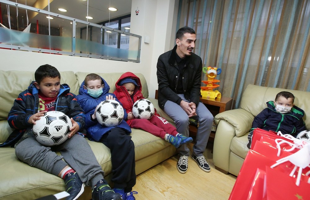 Οι Λάζαρος Χριστοδουλόπουλος, Μιγκέλ Άνχελ Γκερέρο, Ματίας Ναουέλ και Δομένικος Μασούλας εκπροσώπησαν τους «ερυθρόλευκους», που μοίρασαν δώρα και χαμόγελα στους μικρούς ήρωες.