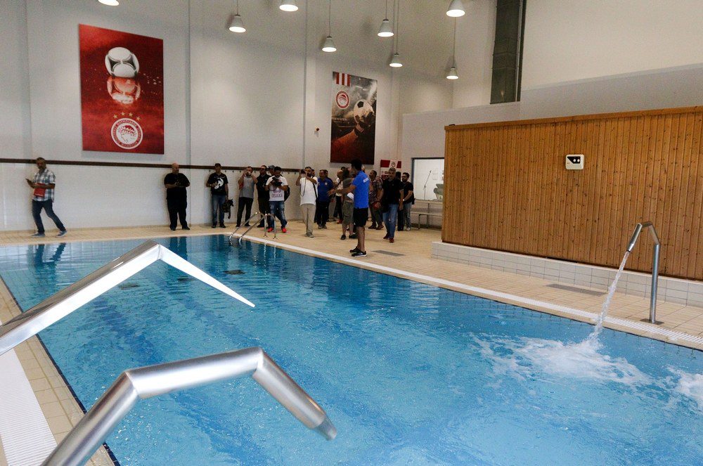 Η σωστή και γρήγορη αποθεραπεία των αθλητών μετά την προπόνηση ή τον αγώνα είναι επιτακτική ανάγκη. Ακολουθώντας τις σύγχρονες μεθόδους η Π.Α.Ε. Ολυμπιακός παρέχει στους αθλητές της τη δυνατότητα αυτή με τη χρήση πισίνας – διαδρόμου με παγωμένο νερό και βότσαλα. Το παγωμένο νερό έχει θερμοκρασία που κυμαίνεται στους 8ο C. Αυτό που χρειάζεται ο αθλητής μετά από έντονη καταπόνηση είναι η αποβολή όλων των υποπροϊόντων του μεταβολισμού, ο περιορισμός των μικροτραυματισμών, και να καταπραΰνει το νευρικό του σύστημα.
