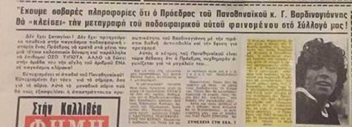 «Ο Μαραντόνα στόχος του ΠΑΟ», ανέφερε χαρακτηριστικά το πρωτοσέλιδο ενώ, το ρεπορτάζ σημείωνε: «Ο πρόεδρος του Παναθηναϊκού, κ. Γ. Βαρδινογιάννης θα κλείσει τη μεταγραφή του ποδοσφαιρικού αυτού φαινομένου στον Σύλλογό μας».