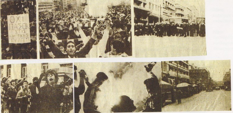 Μολότοφ στο ζαχαροπλαστείο «Φλόκας», σπασμένες βιτρίνες και αυτοκίνητα, εμπρησμός του καφέ «Ζόναρς», καταστροφή της Εθνικής Τράπεζας στο νούμερο 12 της Ιπποκράτους, ένταση/ζημιές ακόμα και στο ξενοδοχείο «Μ. Βρετανία», συνθήματα όπως «απόψε θα σβήσει ο ήλιος του ΠΑΣΟΚ» και συλλήψεις συνθέτουν το ντεκόρ εκείνης της επεισοδιακής ημέρας.