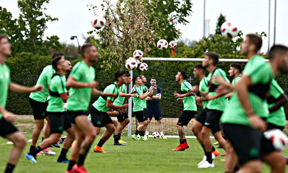 Κατά βάση η πρωινή προπόνηση του «τριφυλλιού» είχε τον χαρακτήρα της αποκατάστασης. Πολλές οι ασκήσεις με την μπάλα και παιχνίδι σε μικρούς χώρους. Οι παίκτες χωρίστηκαν σε τρία γκρουπ των 8 παικτών το καθένα και ανά δύο γκρουπ, έπαιξαν διπλό στο μισό γήπεδο.