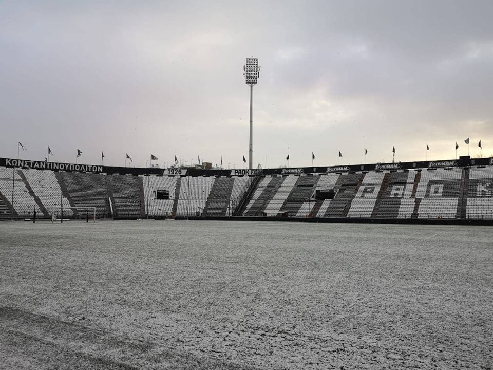 Το γήπεδο ντύθηκε στα λευκά από τον χιονιά που πλήττει μεγάλο μέρος της χώρας και σίγουρα η εικόνα αυτή δεν είναι η πιο συνηθισμένη. Όμως, μπορεί να είναι ένας… οιωνός, καθώς στο χέρι του «δικεφάλου» είναι να μείνουν οι «άσπρες μέρες» και να φτάσουν στην κατάκτηση του φετινού πρωταθλήματος.