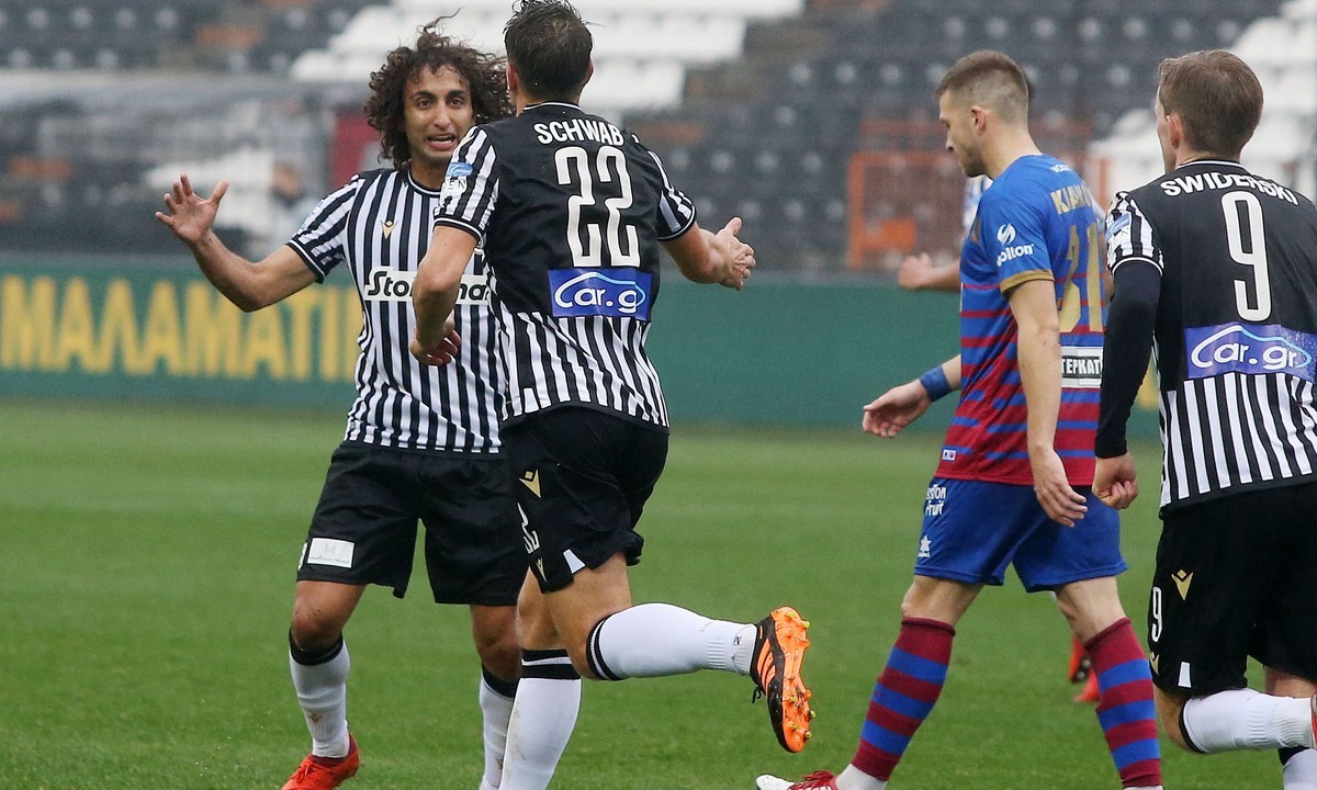 Ο Αυστριακός έστειλε την μπάλα στην δεξιά γωνία του γκολκίπερ των Θεσσαλών και έφερε στα ίσια.