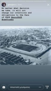 «Δεν έχει σημασία τι απόφαση θα πάρουμε, αυτό δεν θα αλλάξει τις προθέσεις μας και τις υποχρεώσεις μας απέναντι στους οπαδούς του ΠΑΟΚ. Μόνο ΠΑΟΚ. Νέα Τούμπα», σχολίασε, ποστάροντας μια από τις πρώτες φωτογραφίες της Τούμπας, όταν είχε χτιστεί.