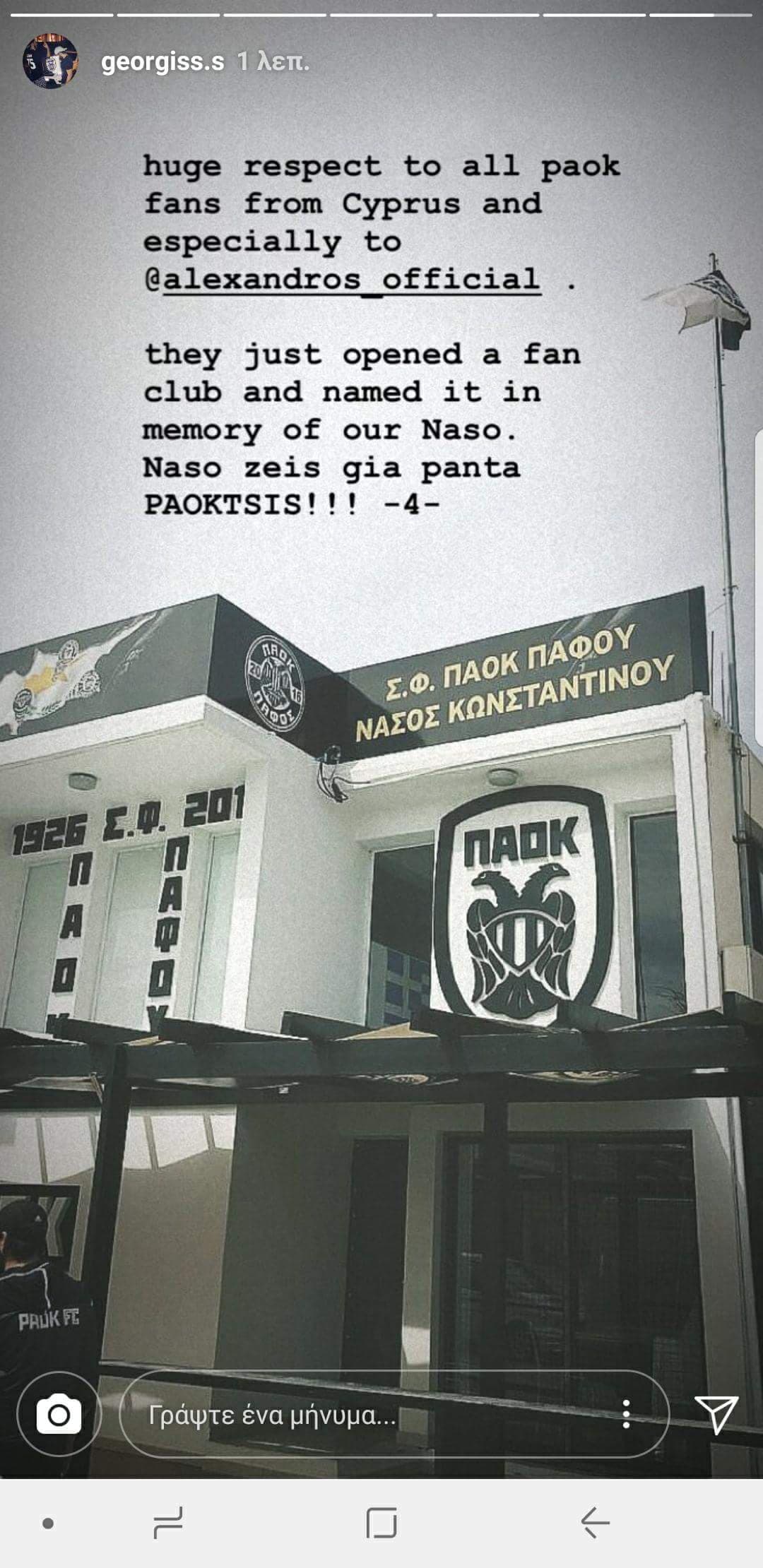 «Μεγάλος σεβασμός στους οπαδούς του ΠΑΟΚ στην Κύπρο. Μόλις άνοιξαν σύνδεσμο και τον ονόμασαν στην μνήμη του Νάσου. Νάσο ζεις για πάντα ΠΑΟΚτσης».