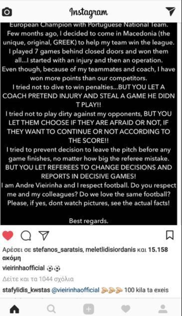 Την συμπαράσταση του, αποφάσισε να δείξει στον Αντελίνο Βιεϊρίνια με ένα σχόλιο στο instagram, ο Κώστας Σταφυλίδης.