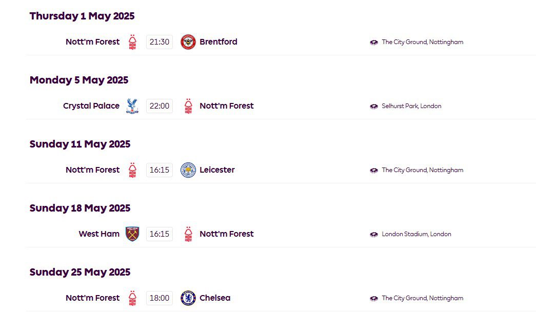 Οι αγωνιστικές που έχουν απομείνει για τη Νότιγχαμ Φόρεστ
