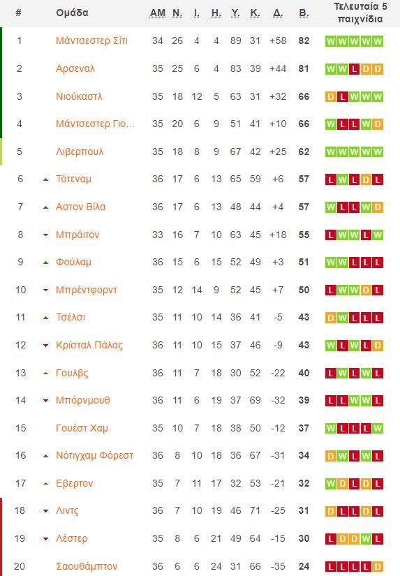 Τέλος, υποβιβάστηκε μετά από έντεκα χρόνια η Σαουθάμπτον. Έχασε από τη Φούλαμ και αποχαιρέτησε την Premier League. Είναι η τρίτη φορά που υποβιβάζεται από την πρώτη κατηγορία. Οι προηγούμενες ήτσν το 1973-74 και το 2004-05. Πάντως, φέτος έχασαν περισσότερα ματς (24) από κάθε άλλη φορά στην ιστορία τους!