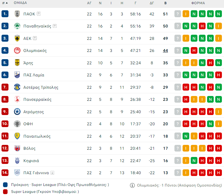 Stoiximan Super League: Η βαθμολογία μετά τη νίκη του Παναθηναϊκού