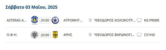 Παράλληλα, ο Αστέρας Τρίπολης υποδέχεται τον Ατρόμητο, σε ένα παιχνίδι όπου οι Αρκάδες δεν έχουν περιθώρια για απώλειες. Με 27 βαθμούς, χρειάζονται μόνο το τρίποντο για να μείνουν ζωντανοί στο κυνήγι της Ευρώπης, ενώ περιμένουν και πιθανή γκέλα του Άρη για να φουντώσει η μάχη ενόψει της τελευταίας στροφής.