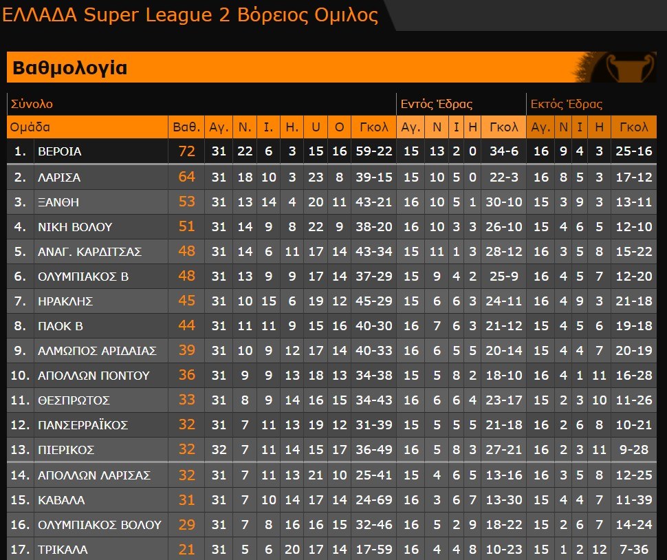 Πρωταθλήτρια του 1ου ομίλου της Super League 2 στέφθηκε η Βέροια την προτελευταία αγωνιστική. Έναν βαθμό χρειαζόταν κόντρα στον Πιερικό και τον νίκησε με το εμφατικό 3-1.