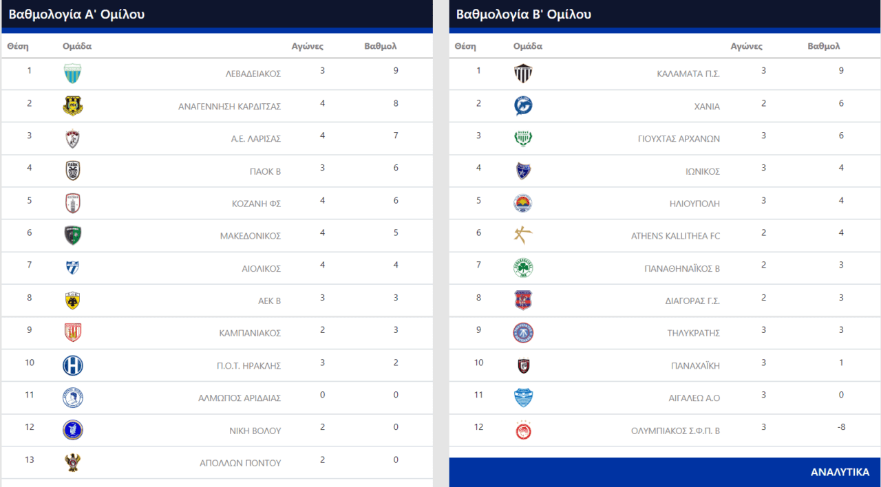Ο Λεβαδειακός ανέβηκε στην κορυφή, αφού καμία άλλη ομάδα δεν νίκησε από τους ανταγωνιστές του. Η Αναγέννηση Καρδίτσας κόλλησε στο 0-0 με τον Μακεδονικό και είναι στο-1 έχοντας και αγώνα παραπάνω.