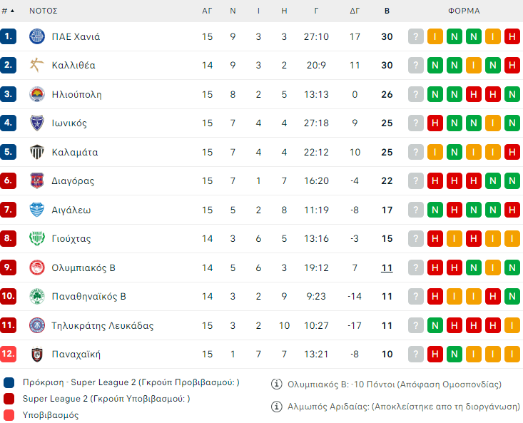 Ισοπαλία ανάμεσα σε Χανιά και Καλαμάτα, στραπάτσο για τον Ιωνικό και μπλόκο στην ΑΕΛ στη Super League 2.