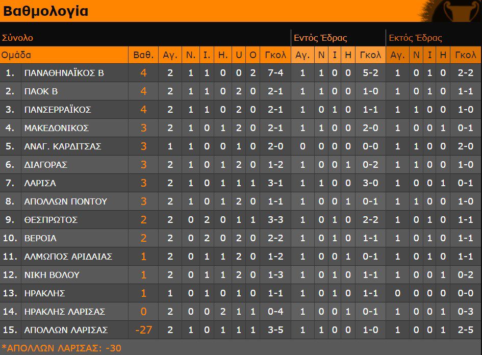 Θεσπρωτός – Παναθηναϊκός Β’ 2-2 (27′ Mπίκας, 55′ Μίγγος – 54′ Αθανασακόπουλος, 83′ Σαρδέλης)