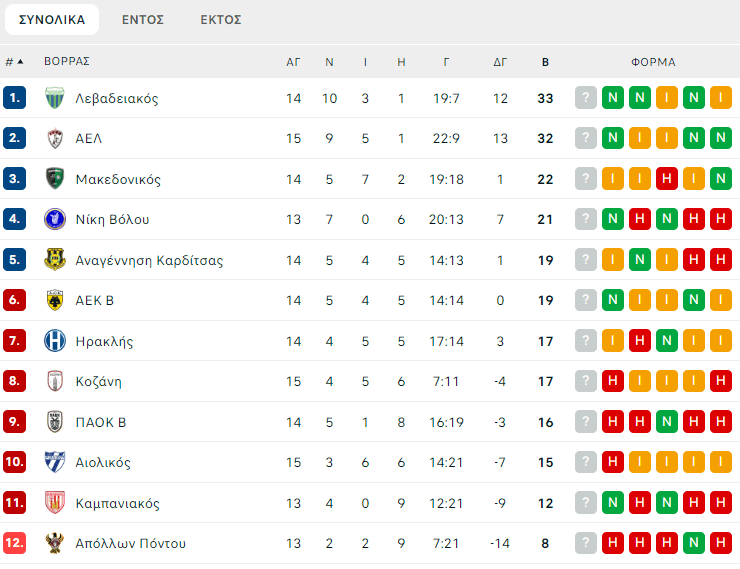 Στον Βορρά ο Λεβαδειακός με αγώνα λιγότερο παρέμεινε στο +1 από την ΑΕΛ. Οι Βοιωτοί έκαναν διπλό στο Πολύκαστρο με γκολ του Ρόμο στο 74′ απέναντι στον τραγικό φέτος Απόλλωνα Πόντου, ενώ οι «βυσσινί» επιβλήθηκαν 2-0 του Αιολικού. Τα γκολ σε ένα δίλεπτο πέτυχαν οι Μαυριάς και Ηλιάδης.
