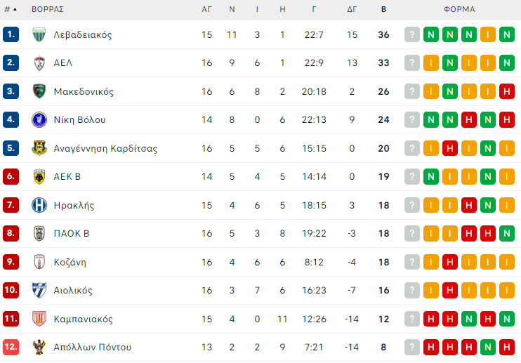ΑΕΚ Β’ – Λεβαδειακός (16:00)