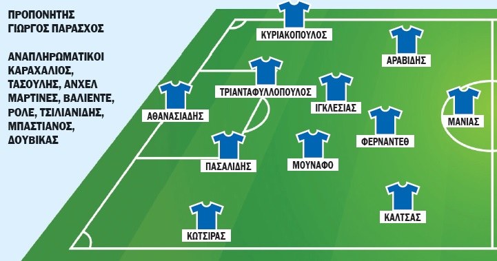 Στο βασικό σχήμα δεν αναμένονται αλλαγές, με μοναδική εξαίρεση ίσως την παρουσία του Μπλάζιτς αντί του Δημούτσου, που είναι τιμωρημένος.