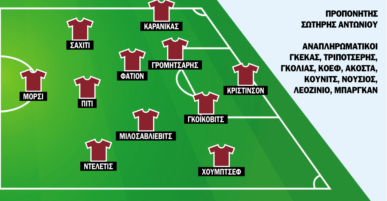Τα προβλήματα δεν απουσιάζουν για τον Σωτήρη Αντωνίου, αλλά τουλάχιστον είναι γνωστά και δεν προέκυψε κάτι νέο. Εκτός πλάνων είναι οι τραυματίες, Μόρας, Κάσσος, Μπέρτος και Ζίζιτς, ενώ Μπάλας, Φρίουι, Νούνιτς δεν βρίσκονται ουσιαστικά στα πλάνα του, οπότε δεν αποτελεί έκπληξη ότι δεν είναι στην αποστολή.