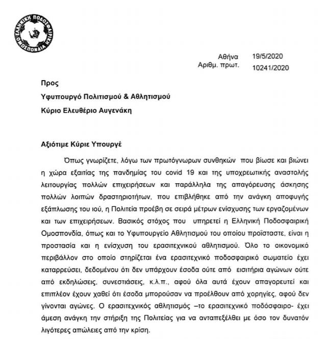 Η επιστολή της ΕΠΟ είναι η ακόλουθη: