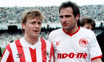 Κωνσταντινίδης και Ιωαννίδης με τη φανέλα του Απόλλωνα Καλαμαριάς που παρέμεινε στην κατηγορία μέσω μπαράζ