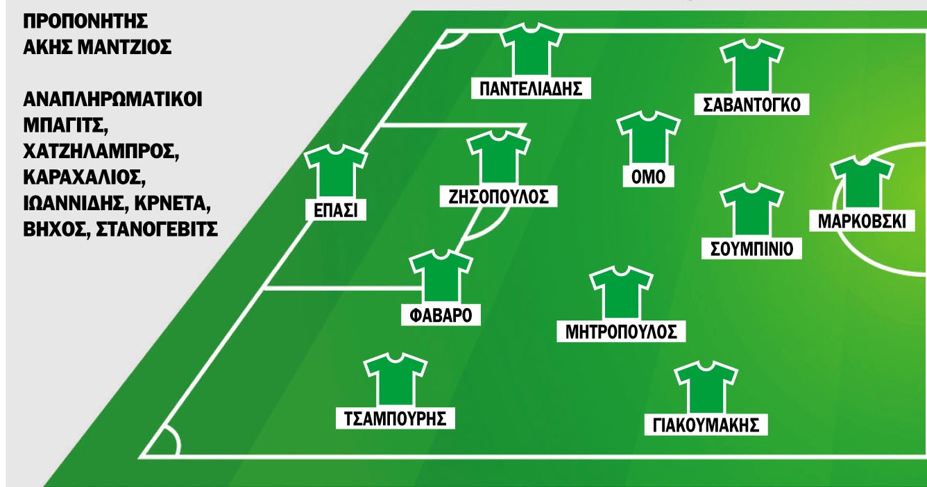 Οι «πράσινοι» με τον Άκη Μάντζιο να προσπαθεί να… διαλύσει τα σύννεφα που έχουν μαζευτεί πάνω από τον πάγκο του, μετά και τη νέα ήττα στο Αγρίνιο, δεν υπολογίζει στους Νανζίς (τιμωρημένος) Στανόγεβιτς, Βίντεκερ. Ντιόγκο, Μαγκά (τραυματίες) και Αντιλέχου (απουσίαζε δύο εβδομάδες).