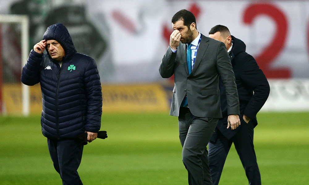 * Στο γήπεδο και η αποστολή του Παναθηναϊκού. Οι ποδοσφαιριστές των «πρασίνων» όταν έφτασαν στο Καραϊσκάκη μπήκαν στον αγωνιστικό χώρο για την καθιερωμένη βόλτα.