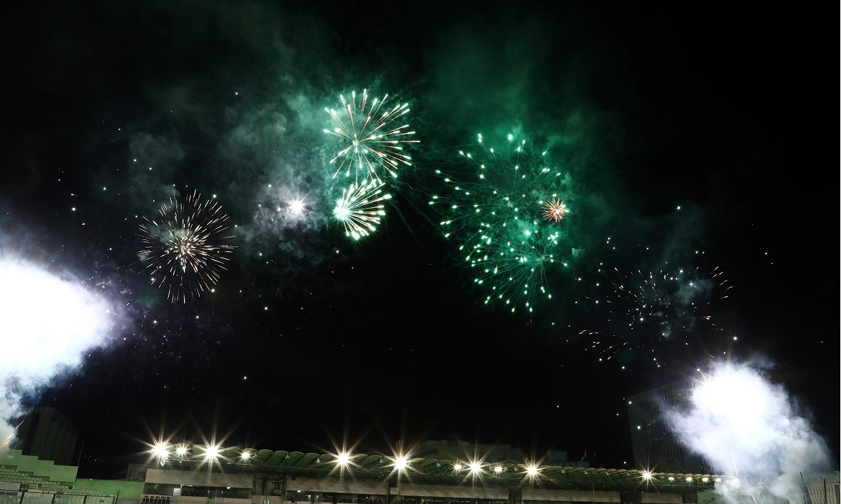 Πριν από τη σέντρα δεκάδες πυροτεχνήματα εκτοξεύθηκαν, δίνοντας χαρακτήρα γιορτής στο ντέρμπι.